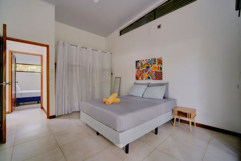 Nestled in the stunning landscape of Puerto Viejo, Costa Rica, Villa Wolaba invites you to experience a luxurious, eco-friendly retreat in the town heart. Designed by a Canadian artist, our villa harmoniously combines comfort, sustainability,,and the enchanting essence of the jungle. Villa Wolaba features two accommodation options, thoughtfully crafted for couples and families alike.